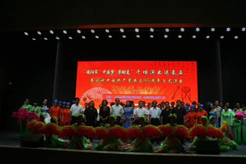 為慶祝中國共產(chǎn)黨成立95周年,樹立典型,表彰先進(jìn),7月1日,公司組織召開了 “七一”表彰會暨文藝演出活動。表彰會回顧總結(jié)了過去一年來的工作,并對在公司各條戰(zhàn)線上做出顯著成績的16名優(yōu)秀共產(chǎn)黨員予以表彰。表彰會結(jié)束后,公司精心組織排練的文藝節(jié)目向各條戰(zhàn)線上的職工進(jìn)行了精彩的匯報演出。公司主要領(lǐng)導(dǎo)出席此次會議并觀看演出。