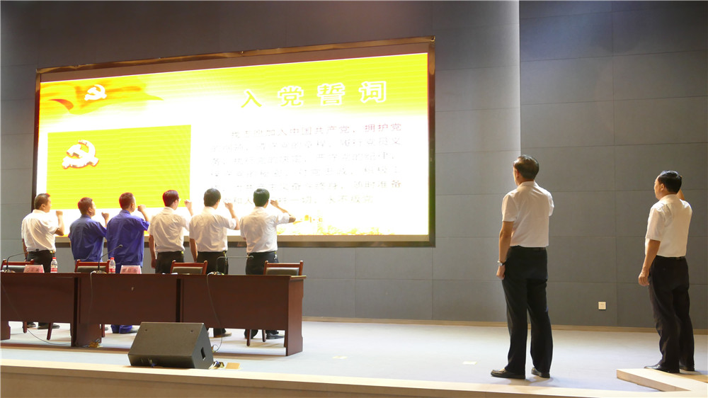 公司黨委委員路建存宣讀《關于中共林州重機黨委及其下屬黨組織組成人員任職的通知》和《關于表彰2018年度優秀共產黨員的決定》,大會對在公司各條占線上做出顯著成績的10名優秀黨員給予了表彰。同時新黨員進行了宣誓。